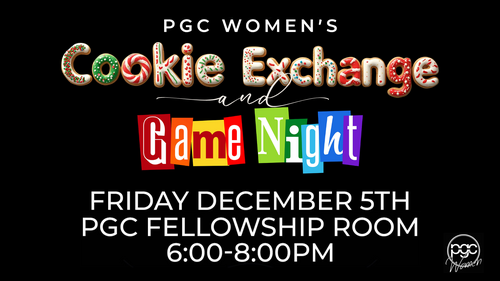 Save the date for our PGC Women's cookie exchange and game night! Come for one or come for both, either way we can't wait to see you on Friday, December 5th from 6-8pm in The PGC fellowship room! Bring a friend! Please RSVP using the link below to let us know you're coming!