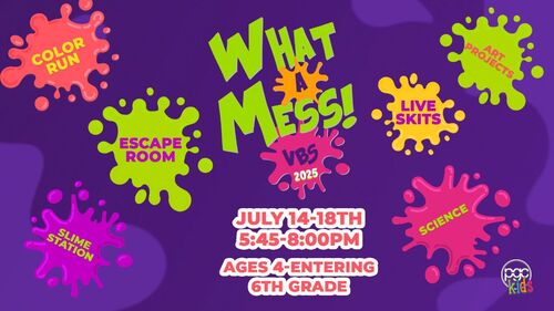 Join us for a fun and messy week at "What A Mess VBS!!"