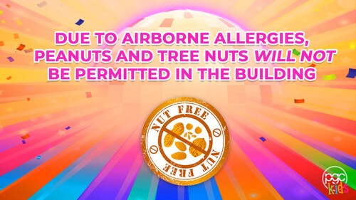 Due to airborne allergies, absolutely no food will be permitted into the building. Your child does not need to bring a water bottle. They will receive water bottles several times throughout the evening.
